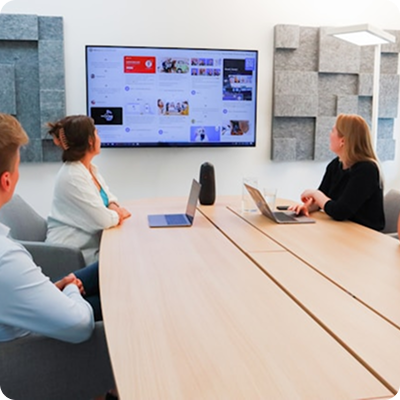 Office & remote signup, team collaboration, space booking, lobby screens, analytics